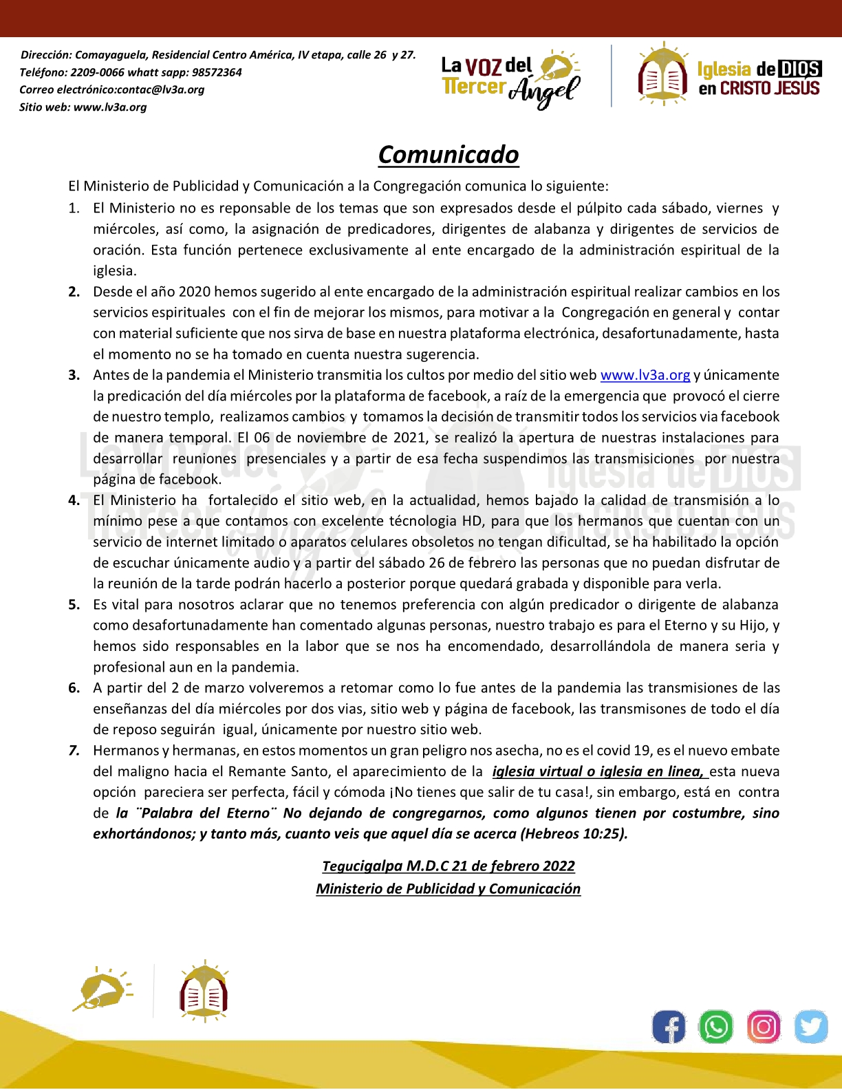 Comunicado del Ministerio de Publicidad y Comunicación